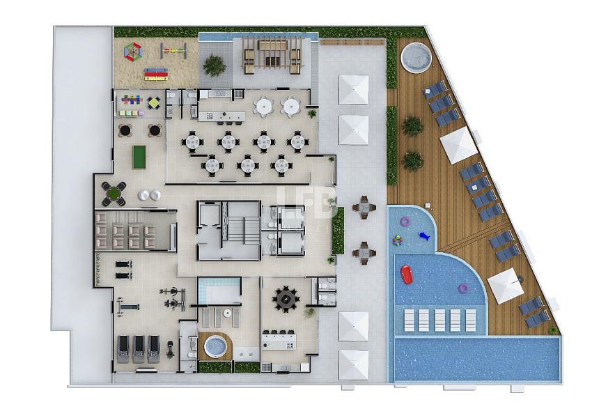 Comodidades:Área de serviço, Churrasqueira, Lavabo, Espera para split, Armário embutido, Móveis planejados, Hidrômetro individual, Cozinha americana, Sala de estar, Sala de jantar, Interfone, Spa, Academia, Sauna, Salão de jogos, Elevador, Playground, Piscina, Salão de festas, Piscina infantil, Espaço gourmet, Brinquedoteca, Gás individual, Hall de entrada, Jacuzzi, Estar social.