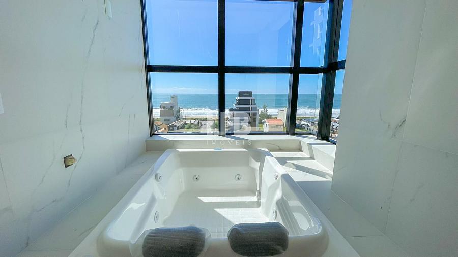 Na área íntima, o apartamento conta com 3 amplas suítes, garantindo privacidade e conforto para toda a família. A suíte master se destaca com uma banheira de hidromassagem com vista para o mar, criando um verdadeiro refúgio de relaxamento.