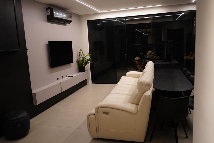 Com 145m² privativos, o imóvel foi cuidadosamente mobiliado e decorado, oferecendo um ambiente moderno, elegante e funcional. O living integrado proporciona amplitude e conforto, conectado à sacada gourmet com churrasqueira a carvão, ideal para receber amigos e familiares enquanto aprecia uma vista mar permanente simplesmente incrível.