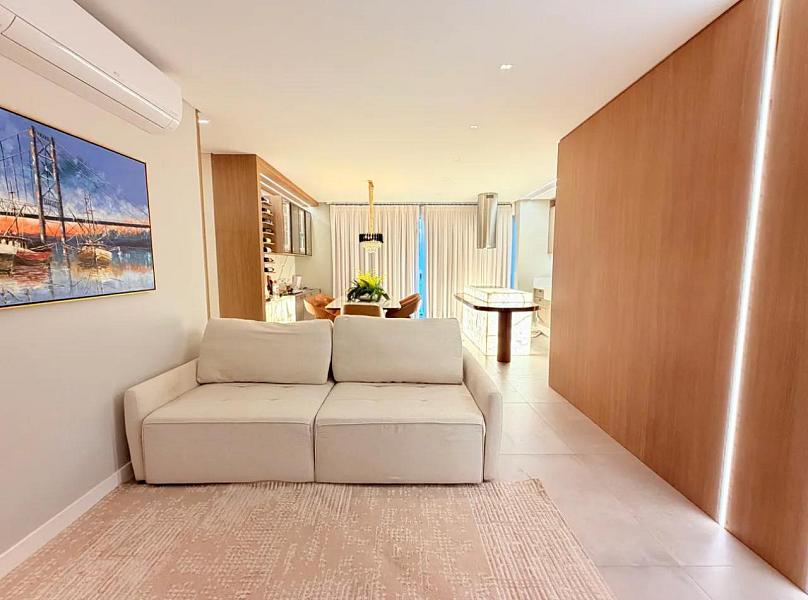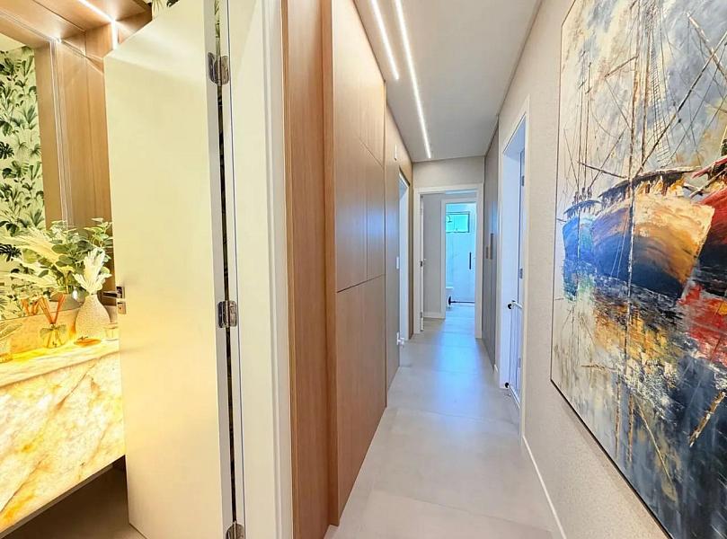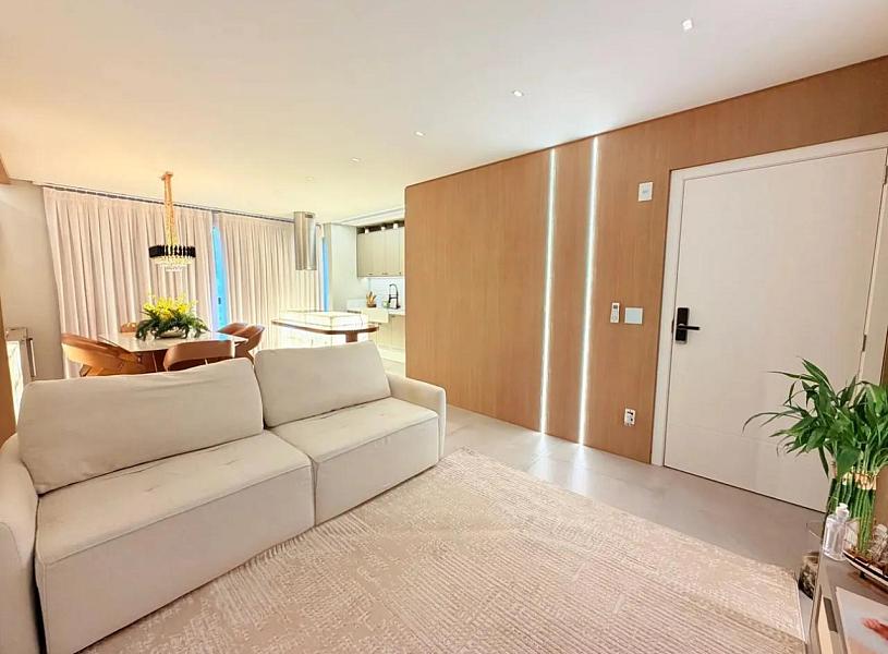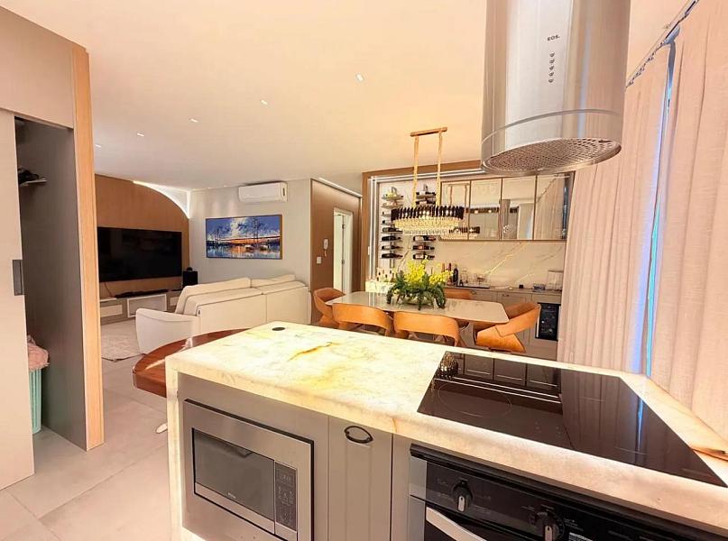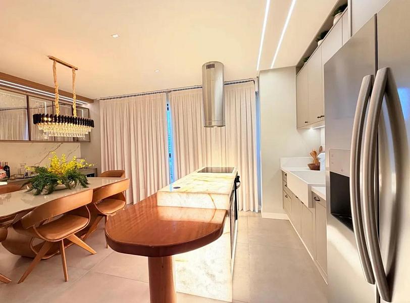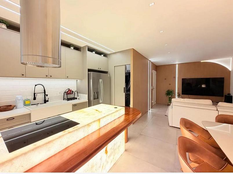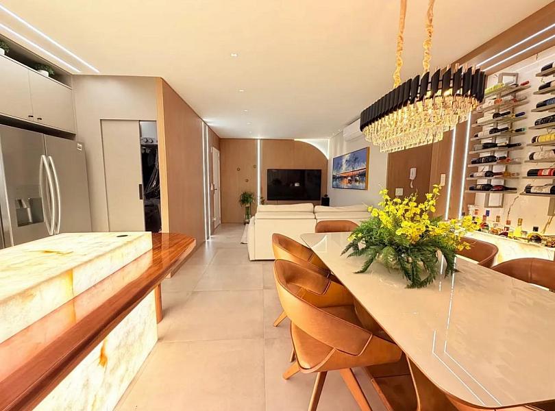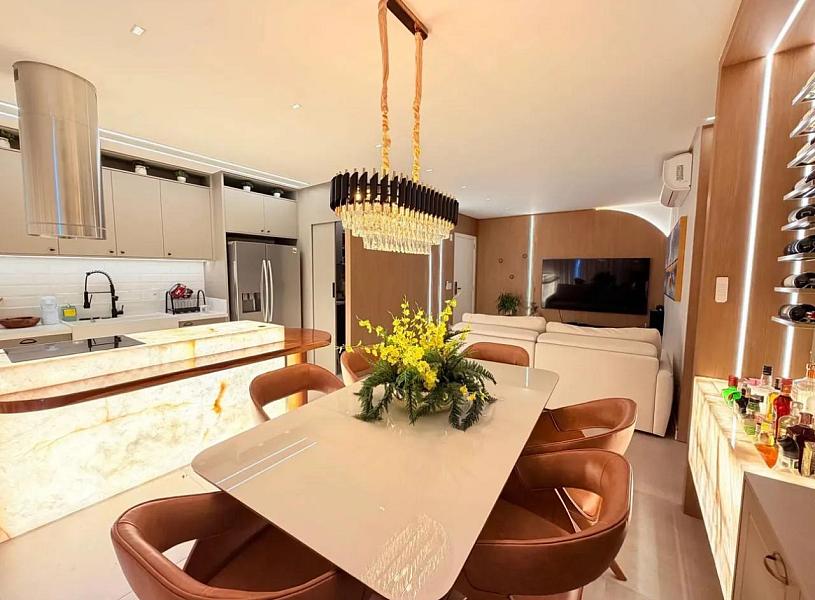 Com 118m² privativos, o imóvel está mobiliado, decorado e equipado, pronto para morar. Sua planta moderna valoriza o conforto e a integração dos ambientes, com um living social amplo conectado à cozinha, ideal para quem gosta de praticidade e momentos de convivência.