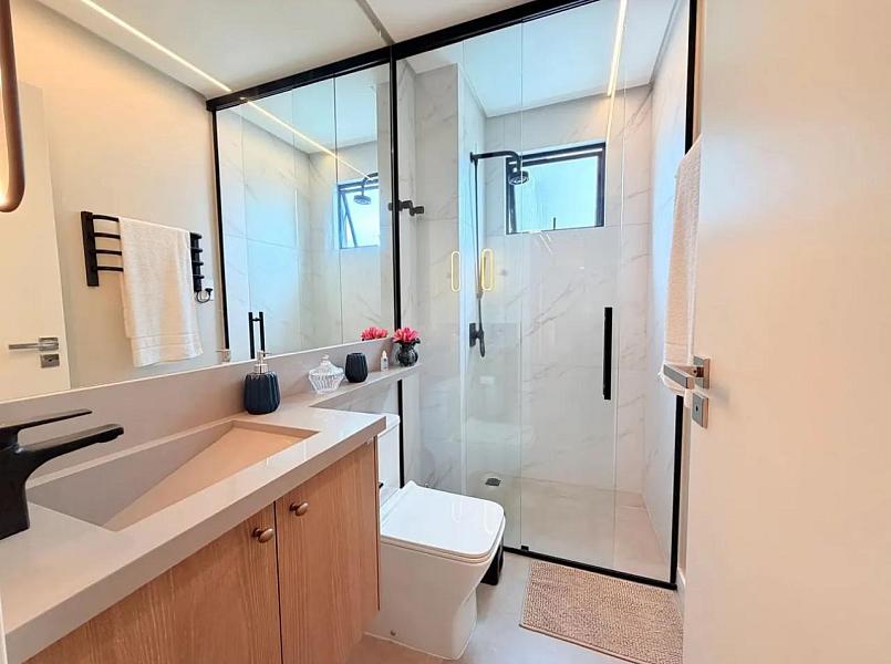 A área íntima conta com 3 suítes, proporcionando privacidade e bem-estar para toda a família, além de 2 vagas de garagem, garantindo comodidade no dia a dia.