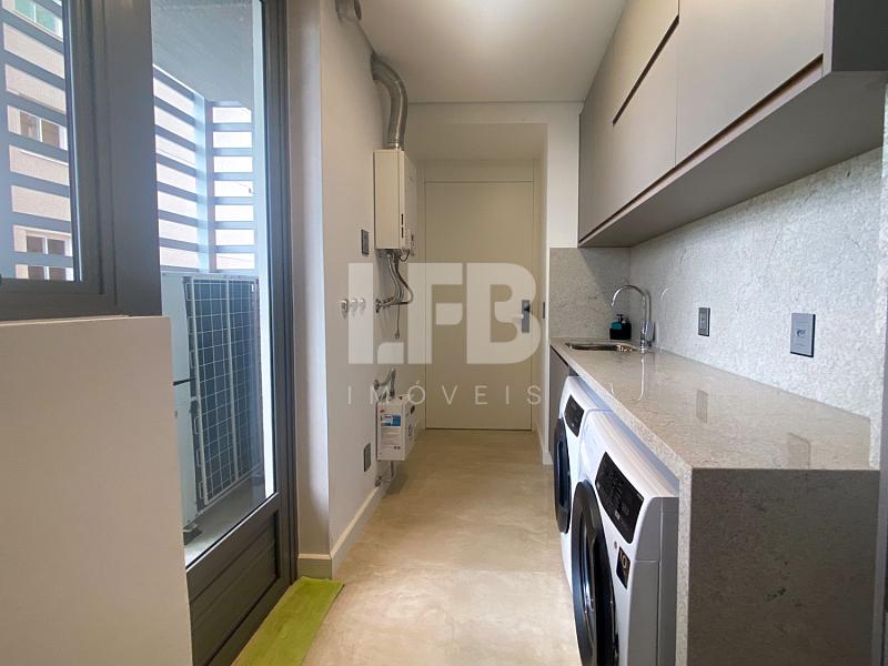 Acabamentos de alto padrão com esquadrias alemãs Schüco, piso porcelanato 1,20 x 1,20m na área social e madeira na área íntima. Conforto térmico e tecnológico com infraestrutura para piso aquecido, ar-condicionado, aspiração central, desumidificação, automação e fechadura biométrica.