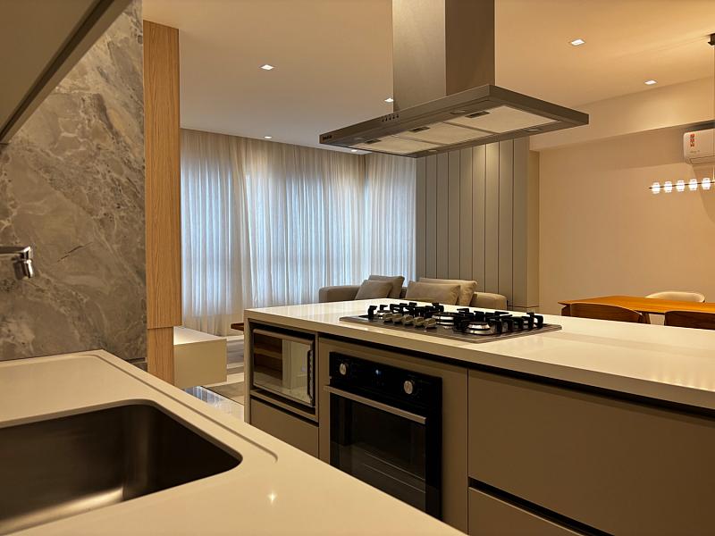 • Living integrado com design contemporâneo