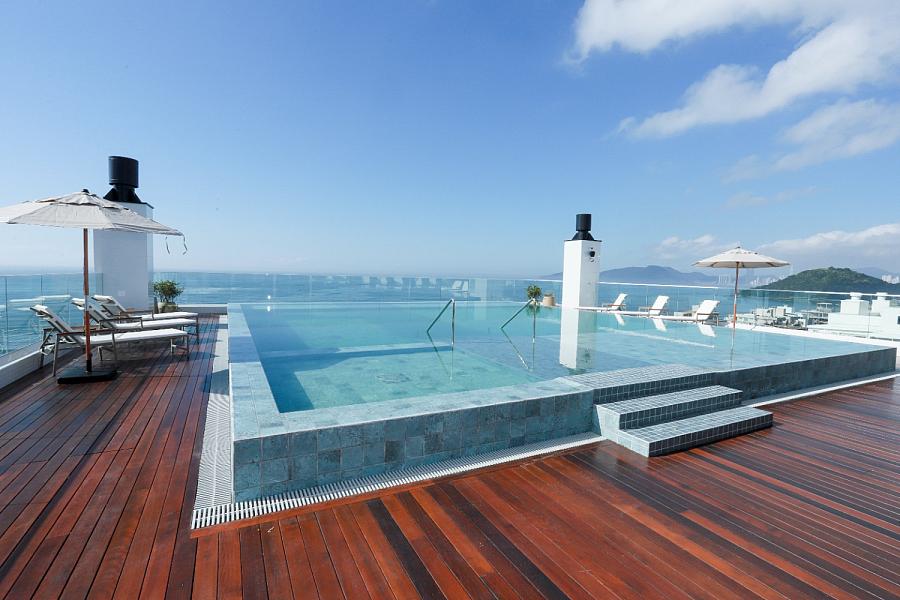 • Piscina com borda infinita e deck molhado