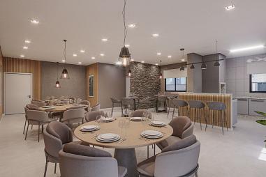 As áreas comuns são mobiliadas e decoradas, proporcionando espaços completos para lazer e convivência.