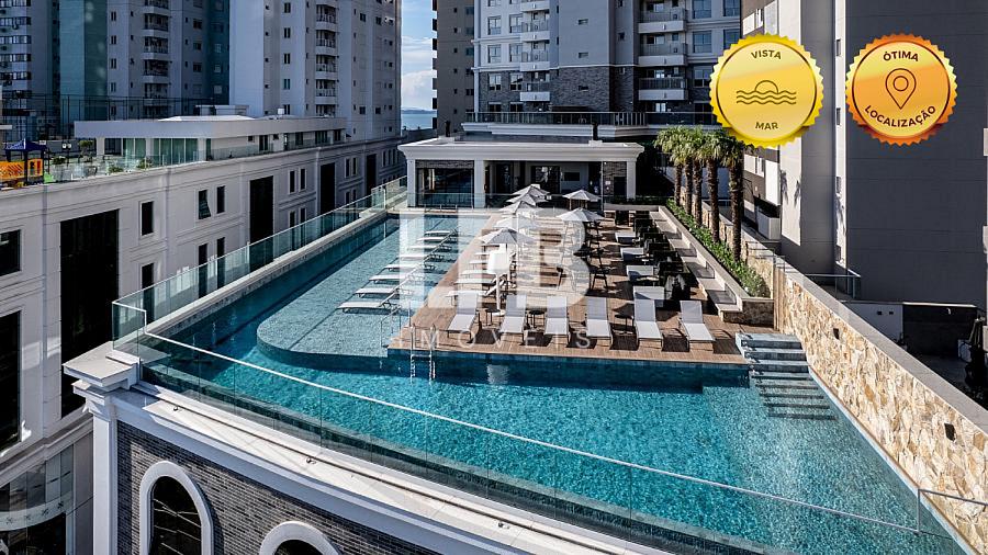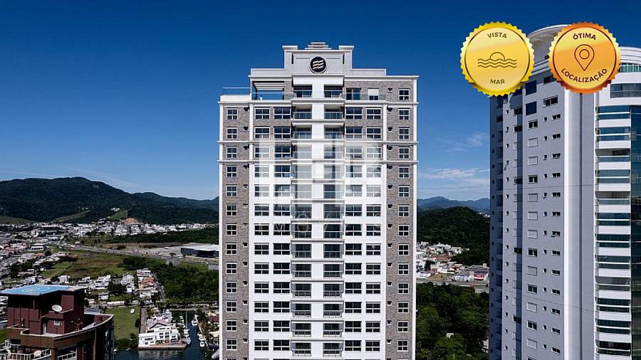 Este apartamento mobiliado de andar alto oferece vista definitiva para o mar. São 4 suítes, 3 vagas privativas e 160 m² muito bem distribuídos, em um empreendimento que aceita pets e com:
