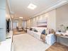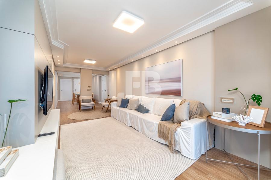 • Living amplo e integrado, com sala de estar, jantar e sala de TV