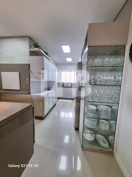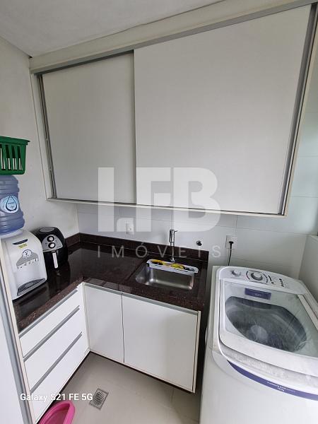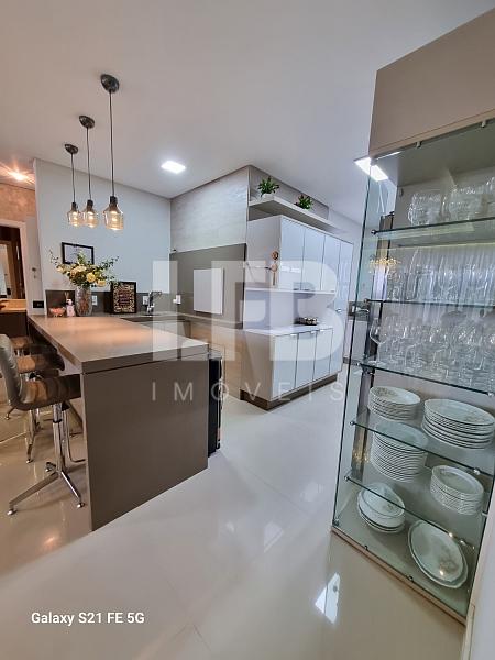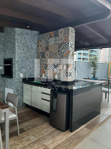 cozinha equipada com móveis planejados se integra à área de serviço, oferecendo praticidade e organização. A churrasqueira valoriza ainda mais o espaço social, ideal para momentos de lazer.