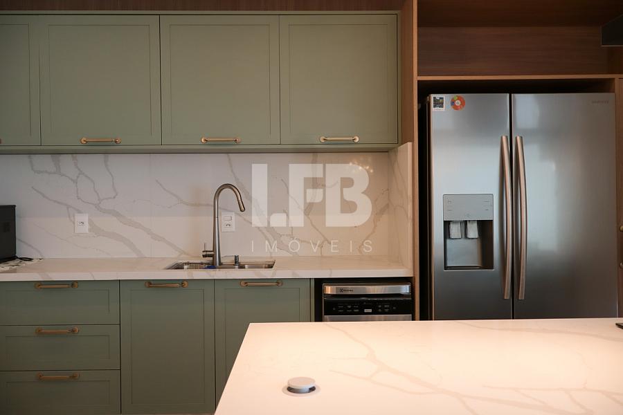 O apartamento conta com acabamentos de alto padrão, como piso em porcelanato, rebaixo em gesso, aquecimento de água, fechadura eletrônica, móveis planejados e infraestrutura para TV a cabo, estando pronto para morar.
