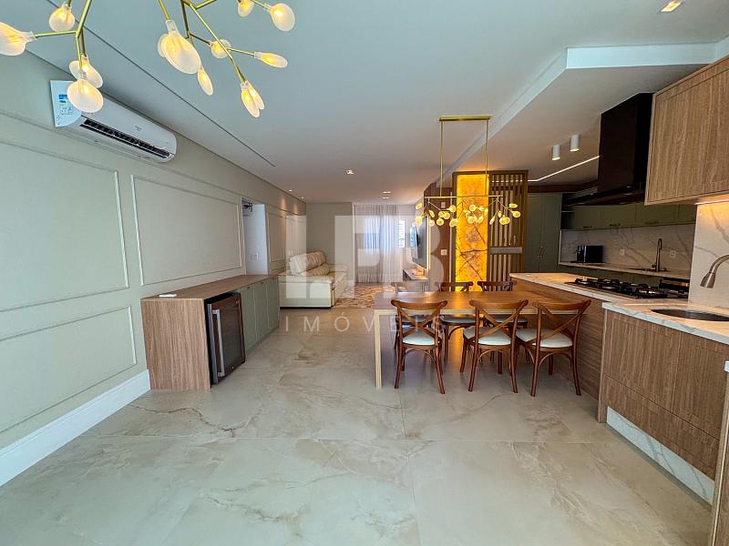 Com 130 m² de área privativa, o imóvel possui 3 suítes bem distribuídas, garantindo privacidade e comodidade para toda a família. O living integrado conecta sala de estar, sala de jantar e cozinha, criando um ambiente amplo, moderno e acolhedor. A sacada integrada com churrasqueira a carvão valoriza os momentos de lazer, enquanto o lavabo, a área de serviço e a sacada técnica completam a funcionalidade do apartamento. São ainda 3 vagas de garagem privativas, um diferencial importante no Centro da cidade.