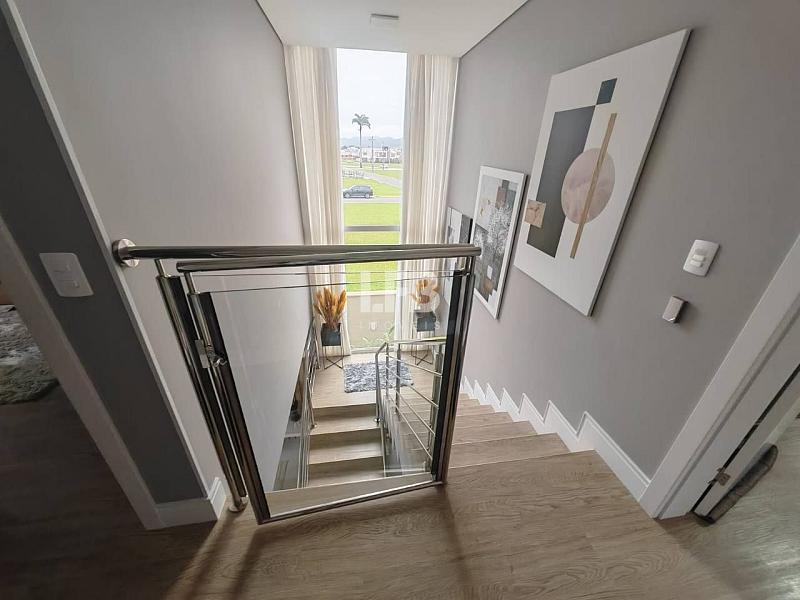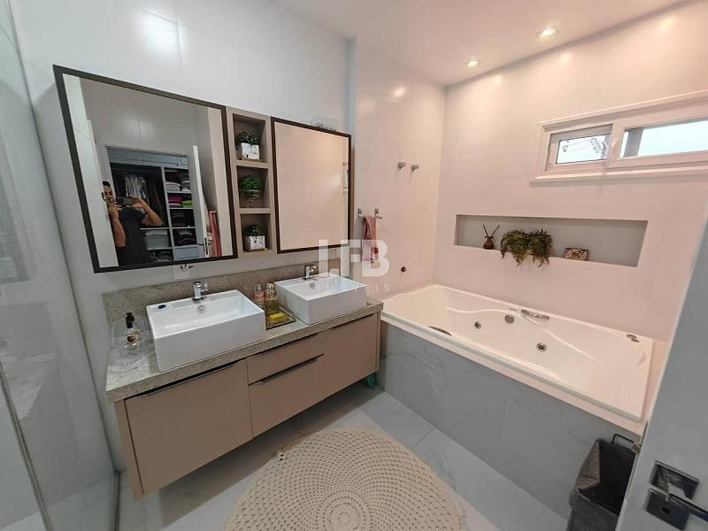 No andar superior são 3 suítes amplas, sendo uma delas master com banheira de hidromassagem e um espaçoso closet.