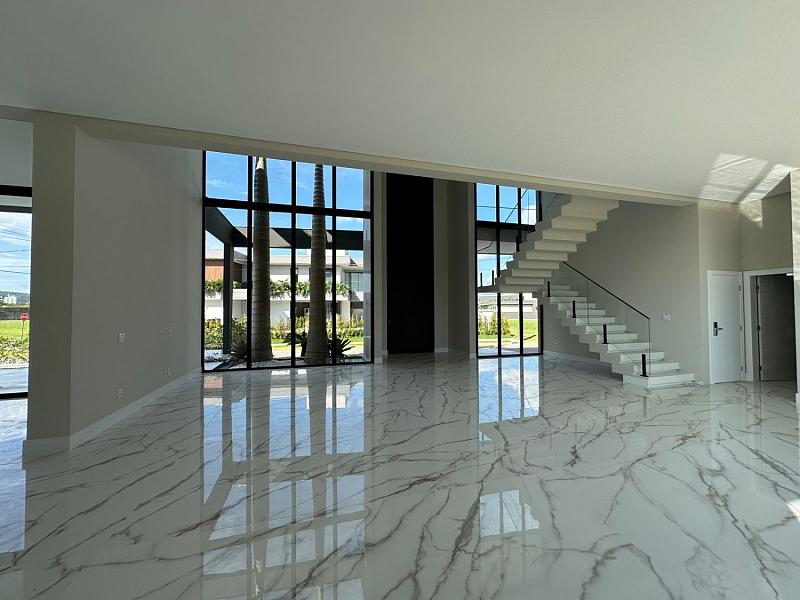 Com 630m² de área privativa, esta casa de alto padrão impressiona pela arquitetura contemporânea, ambientes amplos e excelente padrão construtivo. Ideal para quem busca exclusividade, segurança e qualidade de vida em meio à natureza.