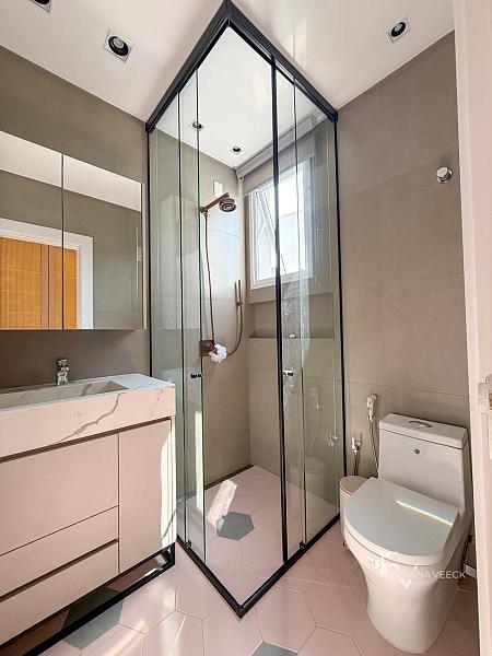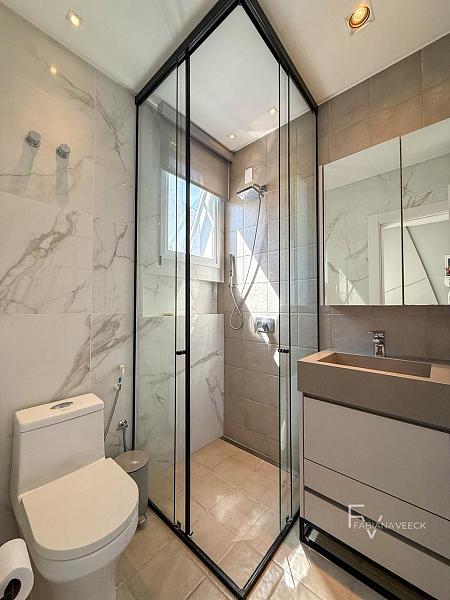 A área íntima oferece 4 suítes, sendo uma suíte master com closet e sacada, garantindo conforto, privacidade e sofisticação para toda a família.