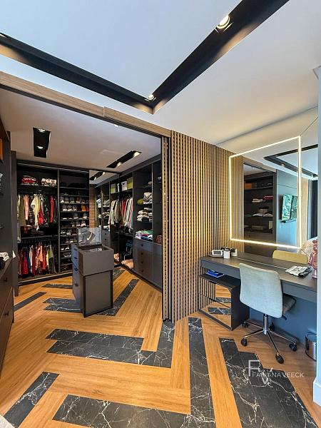 Pensada para o estilo de vida moderno, a casa conta ainda com home office e é totalmente automatizada, proporcionando praticidade, segurança e controle inteligente dos ambientes.