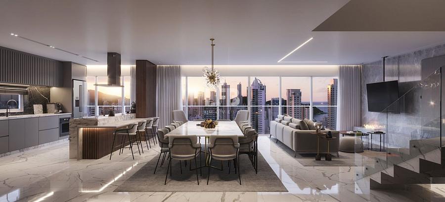 Apartamento com pé-direito duplo,